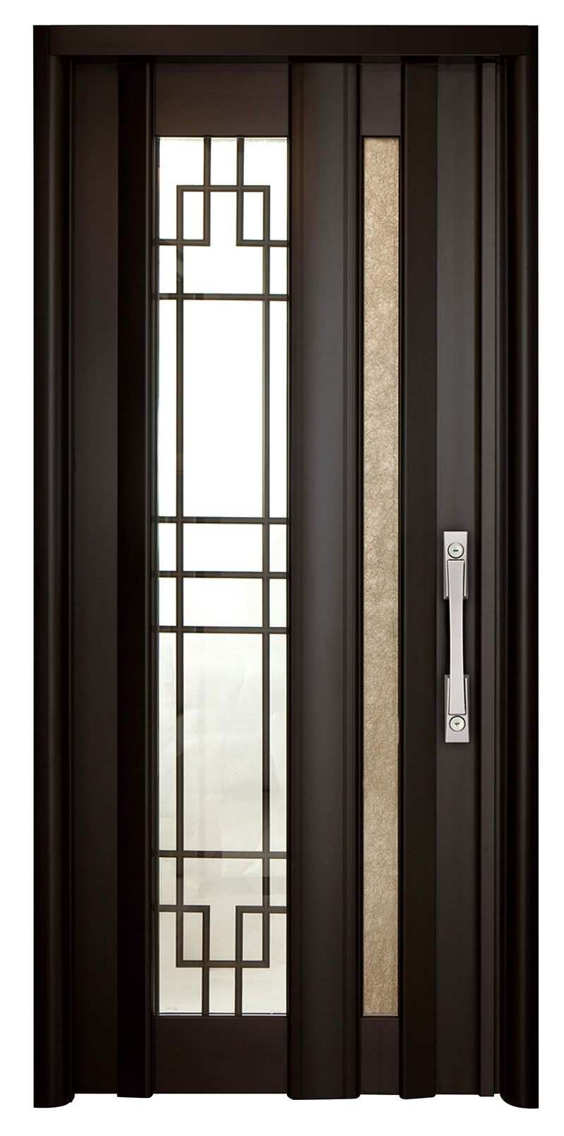 - 複層玻璃為6mm噴砂與3+3mm膠合白膜所製,讓大門形成一道保護膜。